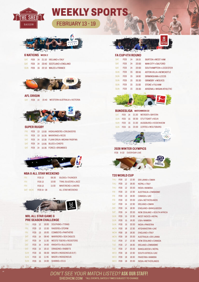 From live sports around the globe to weekly specials and events, it’s all happening at The Shed. Check the calendar to see what’s coming up, and if your favorite game’s missing, just ask our crew!